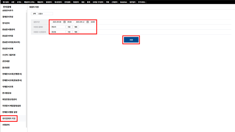 대리 결재자를 지정해줍니다.