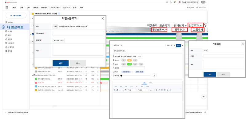 kt비즈오피스의 업그레이드 된 프로젝트 관리 기능을 직접 경험해보세요.