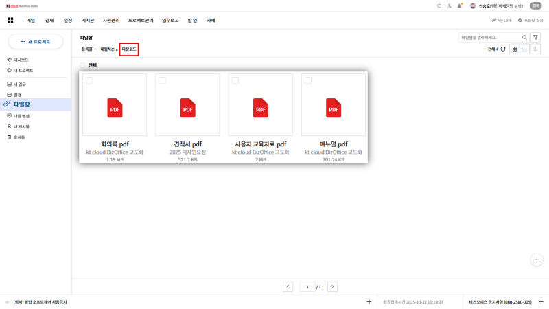 파일함을 통해 전체 프로젝트에서 업로드 된 파일들을 다운로드 가능합니다.